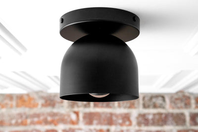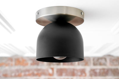 Brighten your space with this sleek, modern flush-mount ceiling lamp—where warm, natural wood meets matte black steel for a minimalist look that complements any décor. Its compact, dome-shaped design delivers focused, inviting illumination, making it the perfect accent for hallways, bedrooms, living rooms, or entryways. Easy to install and built to last, this versatile fixture adds contemporary style and cozy ambiance to every corner of your home. DIMENSIONS