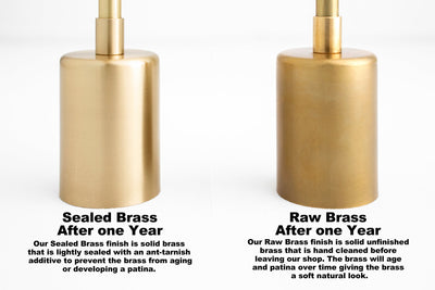 •Raw Brass - features solid unfinished brass that is hand cleaned before leaving our shop. The brass will age and patina over time giving the finish a soft natural look.